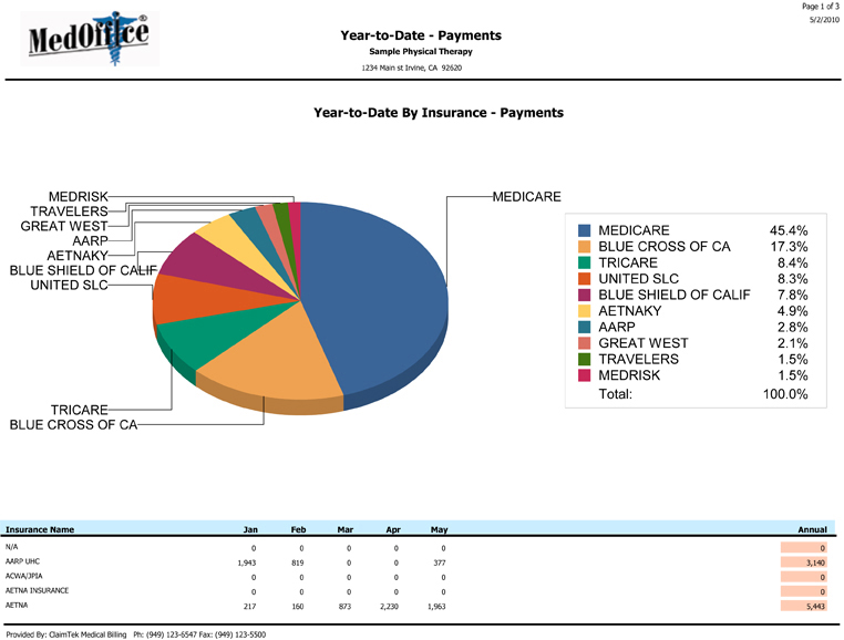 - Offering detailed reports with charts and graphics to track claim status and practice productivity